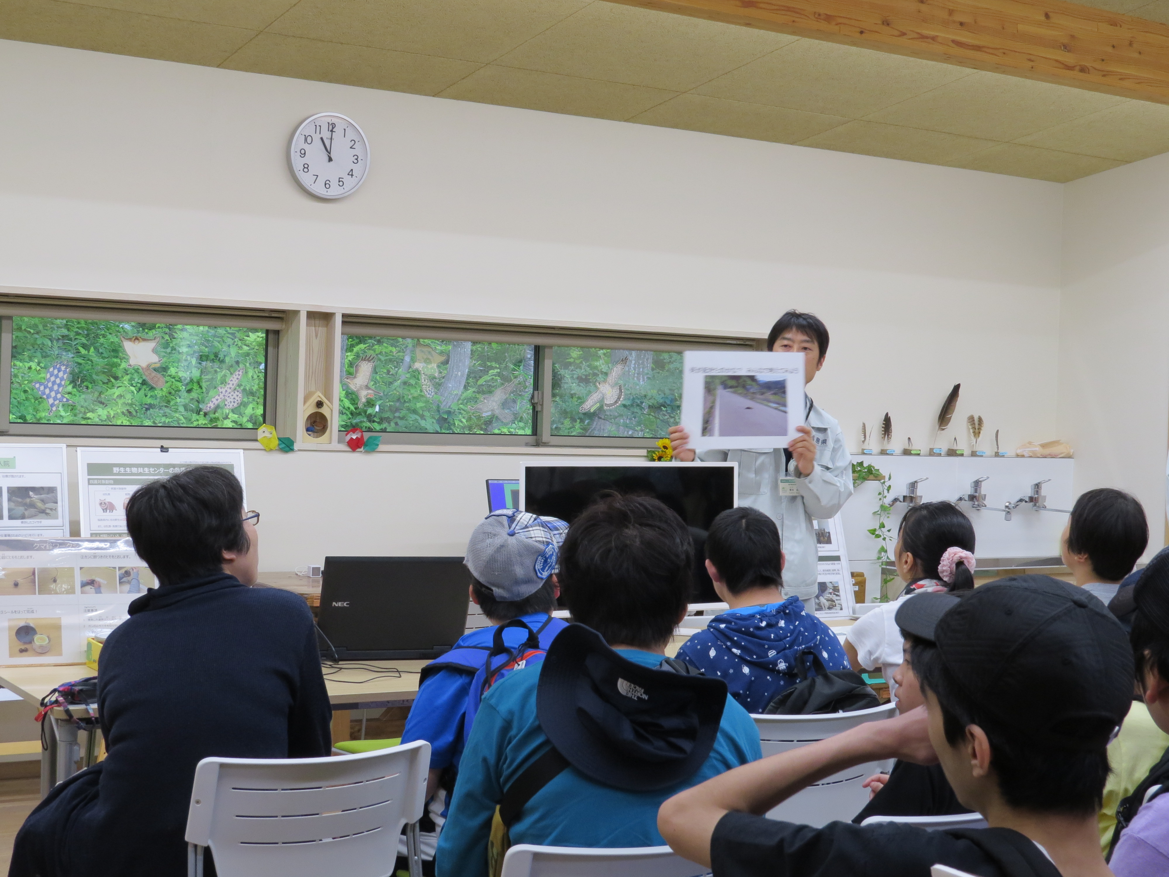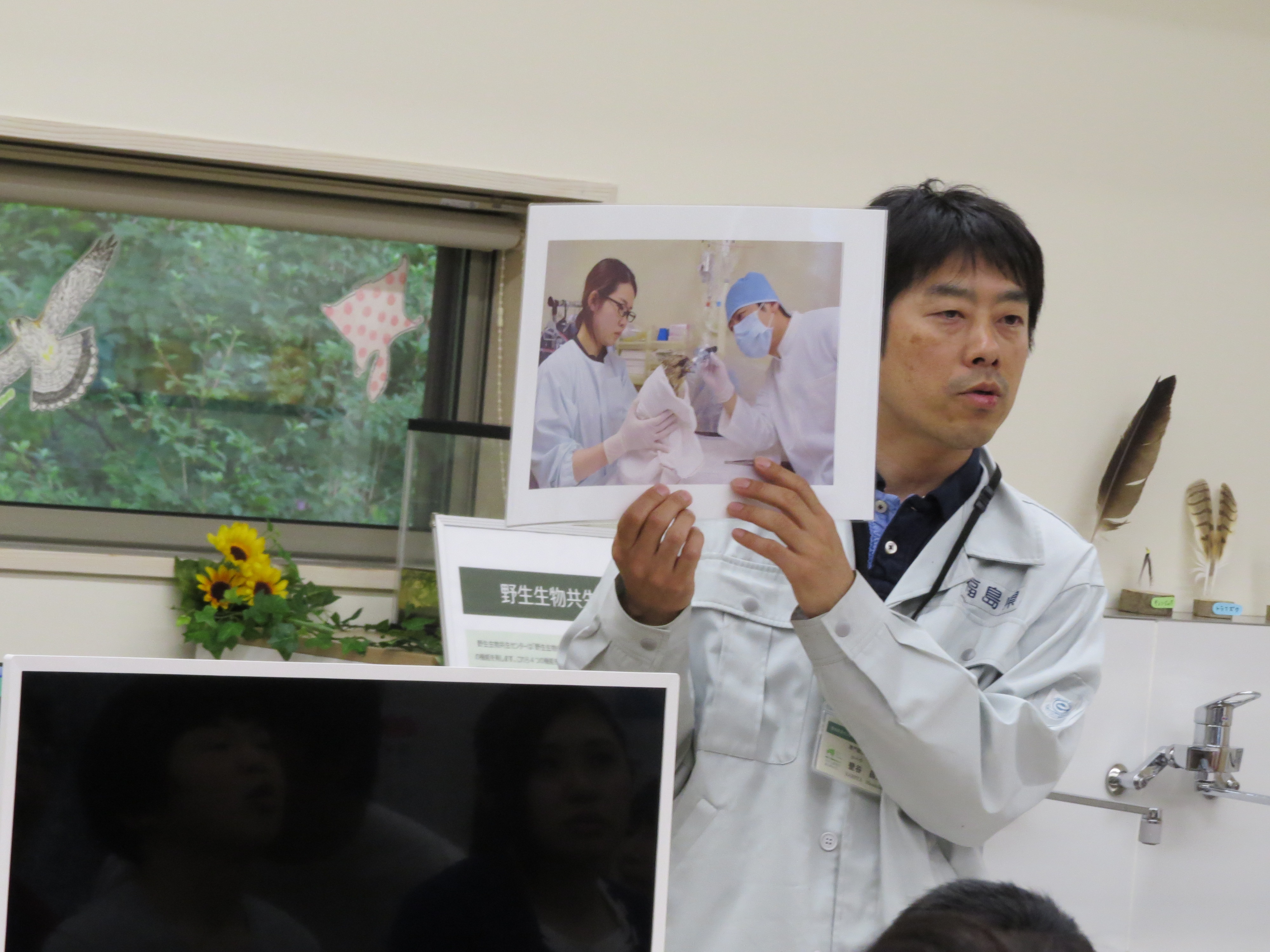 1日目、午前中は、野生動物共生センターにおいて、動物のお医者さんの話を聞いたり、熊鈴つくりなどの体験活動に取り組みました。