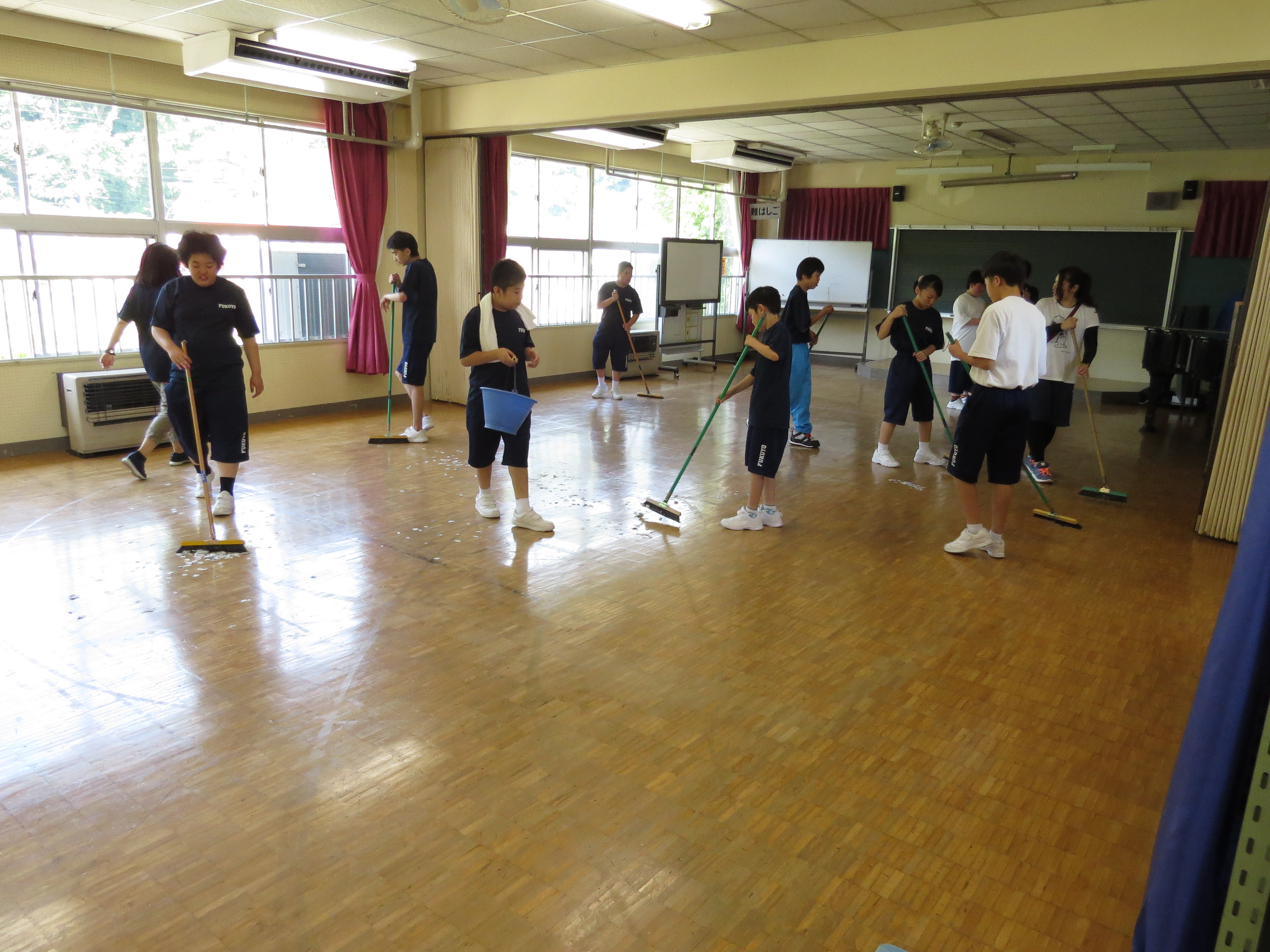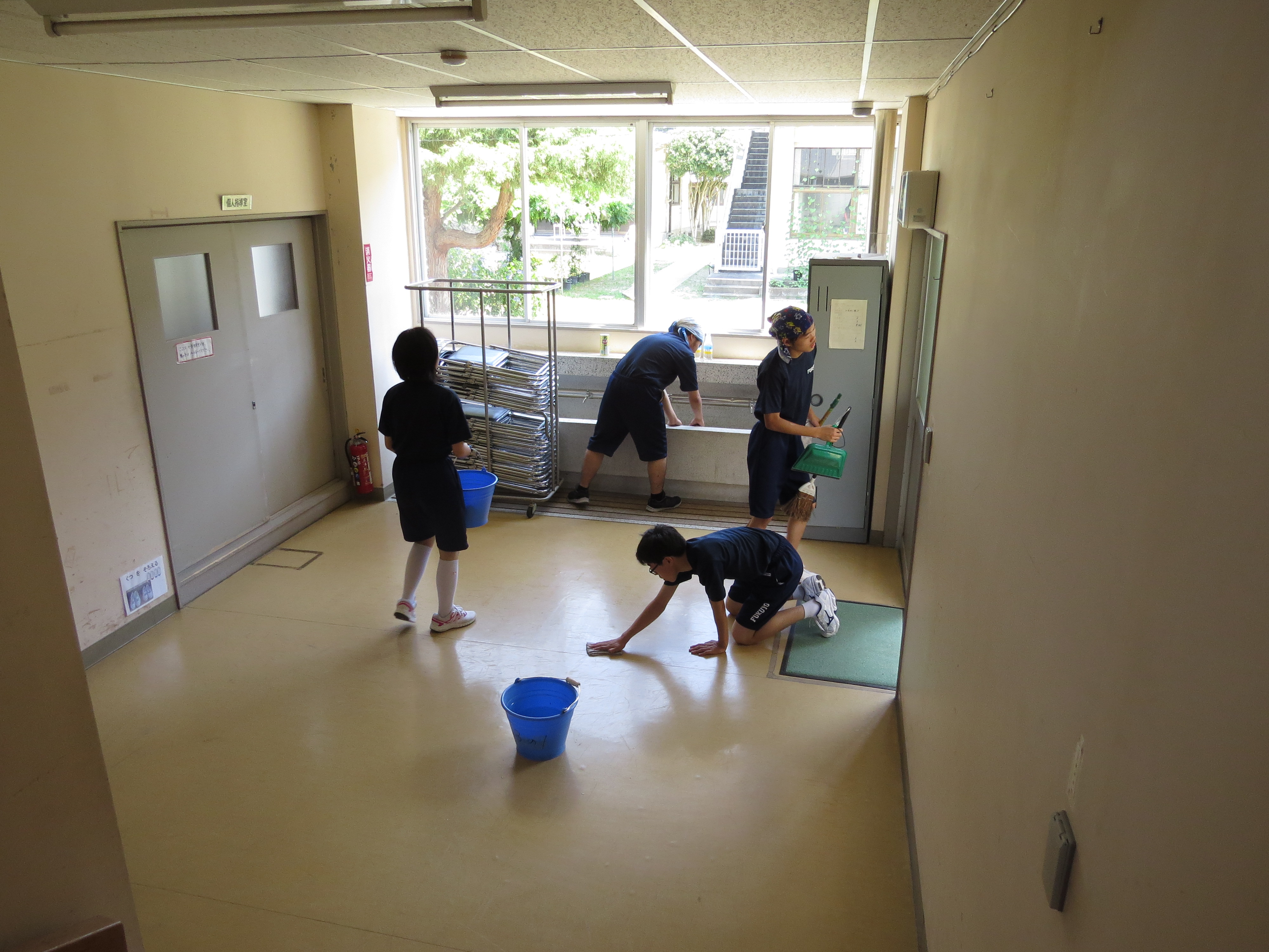 今日は、全校美化活動がありました。学部ごとに分担された場所をみんな一生懸命にお掃除していました。