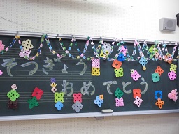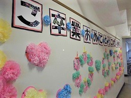 高等部の卒業式が9日、小中学部が14日に迫り、学校全体が卒業ムードに包まれてきました。廊下の掲示物を見ても、卒業生に向けたお祝いの言葉や励ましの言葉が並んでいます。