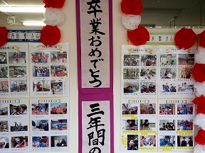 校舎内を歩いていると、廊下の掲示物が一気に卒業式ムードに包まれてきました。在校生からの感謝の気持ちや、卒業生からの後輩に送るメッセージなど、工夫を凝らした掲示物が学校を彩っています。
