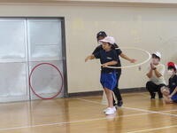 「輪をくぐり、ミニハードルをジャンプして、ゴール!」