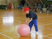 「ボールを転がして、友達につなげました。紅組も白組もがんばれー!」