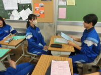 2024年12月5日 16時16分本日、3年生では実力テストが行われました。あとは、しっかりと振り返り、何ができなかったかの確認を。6校時には面接の練習や願書の書き方についての指導がありました。面接に対しての答えは・・・自分の今までのこと、これからのこと、色々考えながら書いていました。今の自分を見つめる・・・さて、自分は何を目標に!