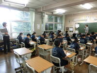 本日は福島一小、安斎先生、清明小、松崎先生、杉妻小、橋本先生が来校され、異校種一日研修が行われました。福島市の幼保小中連接事業の一環で、異校種の理解促進が主な目的になります。午前から1年生の授業を参観され、参観後に小学校から中学校への効果的な連携について話し合いが行われました。