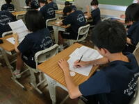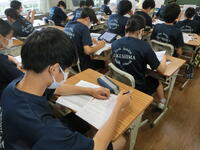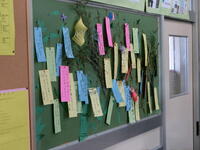 2023年7月13日 08時54分来週21日より、夏季休業に入ります。掲示物も涼しげなものが…3年生の廊下には課題のプリントが、また今後の目標も掲示されています。3年生の総合では、修学旅行のまとめが終わり、お互いに見るための掲示がされています。2年生では夏休みの計画作成ですね…部活動や大会もあり、忙しい日々になりそうです。