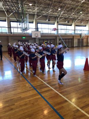 これまで各パートで練習してきましたが、今日は体育館で全体練習です。