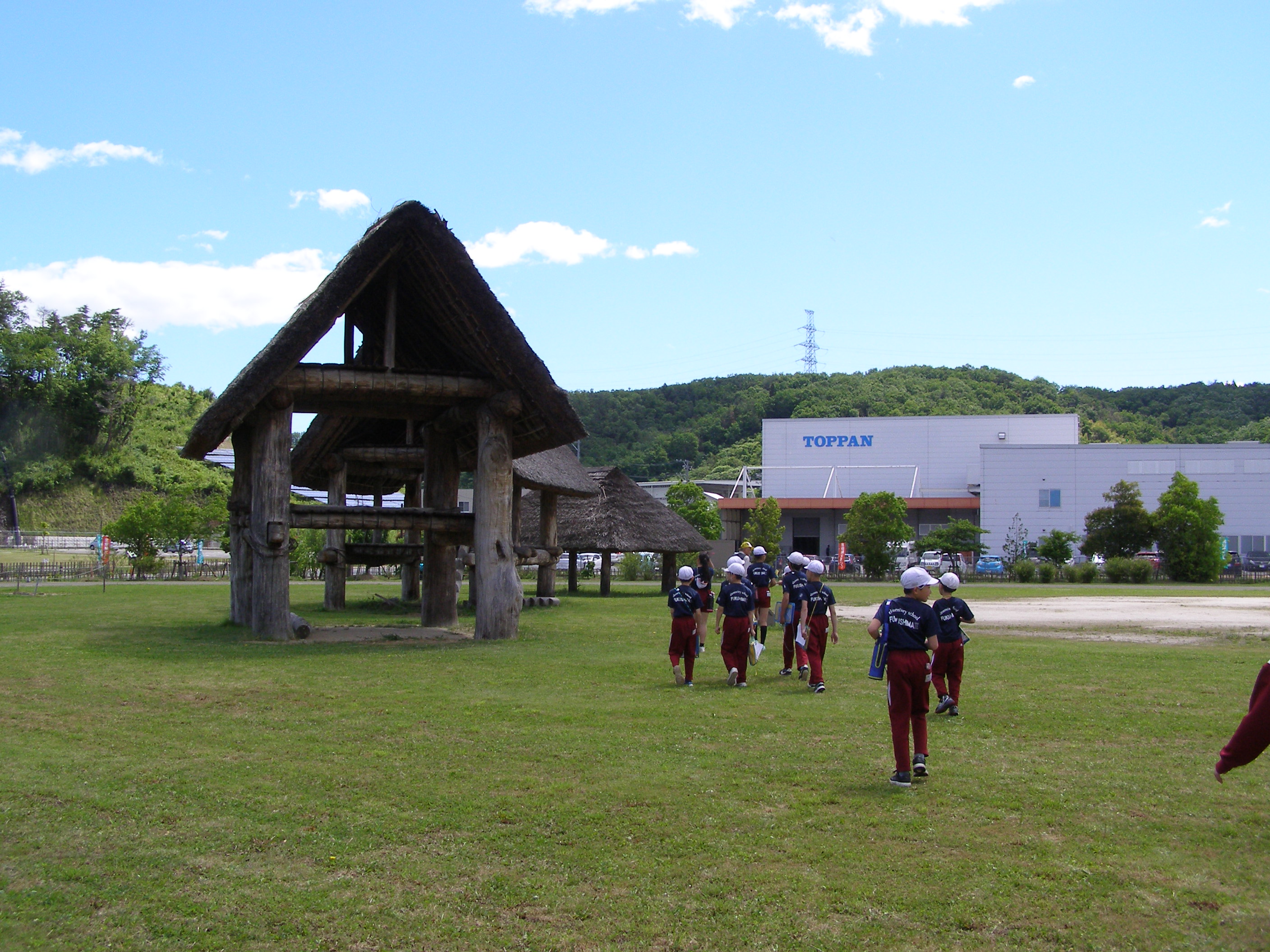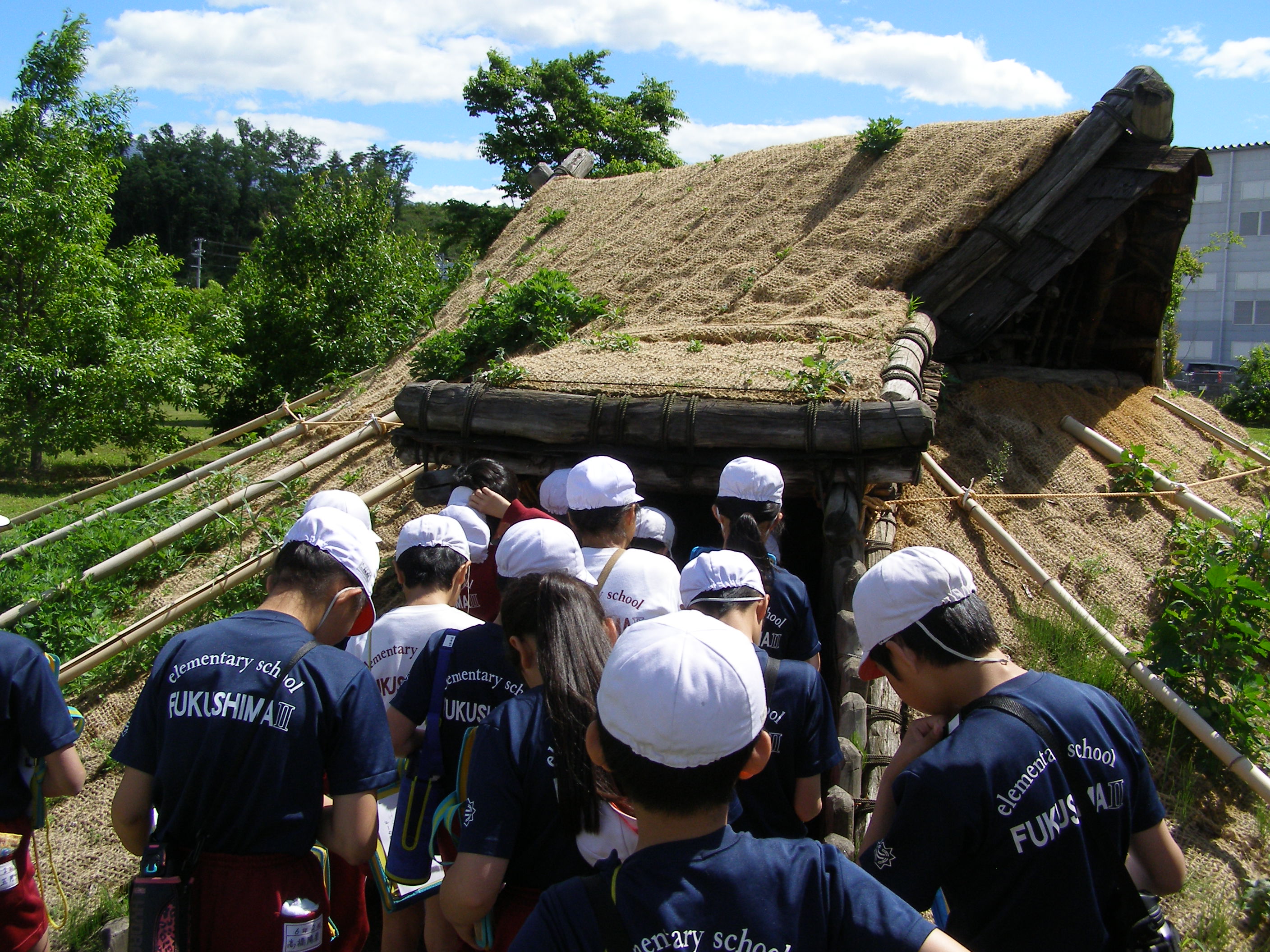 縄文時代から弥生時代にかけて作られた建物や利用された道具を見たり,火起こし体験や弓矢体験を行ったりしました。難しさや大変さを肌で感じ,昔の人々の苦労とそれを乗り越える工夫を,そして現在の自分たちの生活の便利さを知るよい機会となりました。