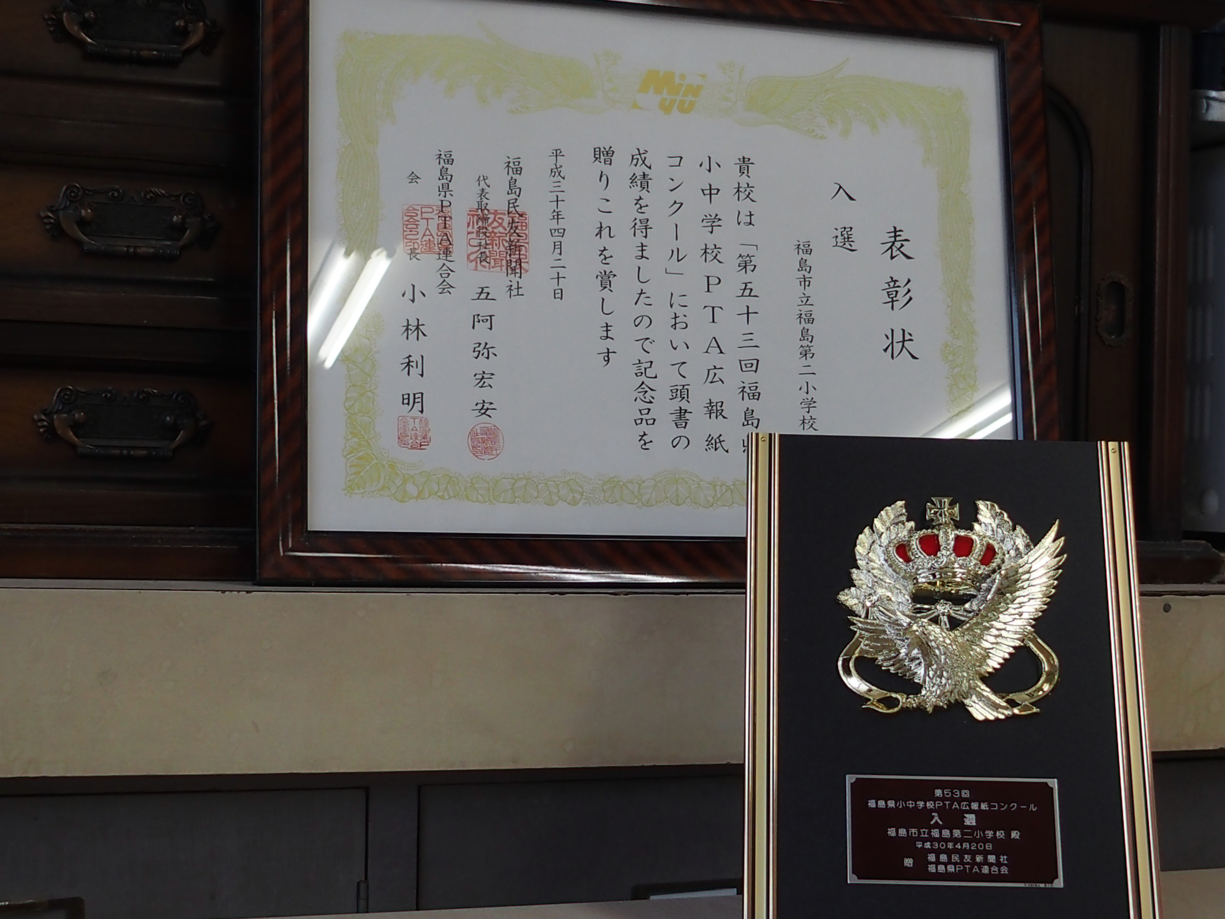 この度,「福島県小中学校PTA広報紙コンクール」において,福島第二小学校PTAが入選いたしました。ご報告いたしますとともに,広報委員会のご努力に敬意を表したいと存じます。