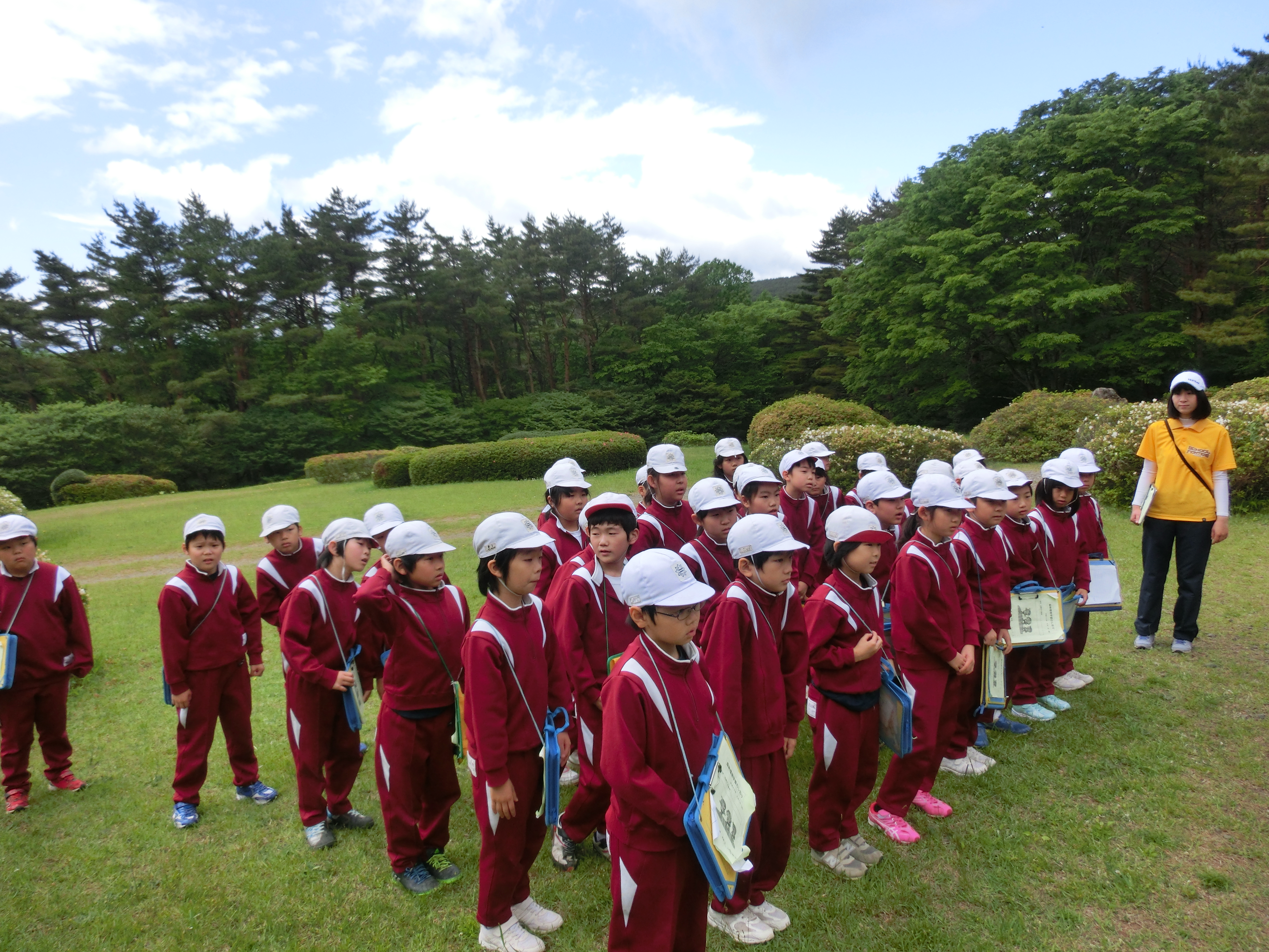 本日,フォレストパークあだたらを目的地として,中学年は森林環境学習を行いました。前日からの雨によるぬかるみなどの心配がまるで杞憂であったかのように,すばらしい天候の元,充実した学習を展開することができました。