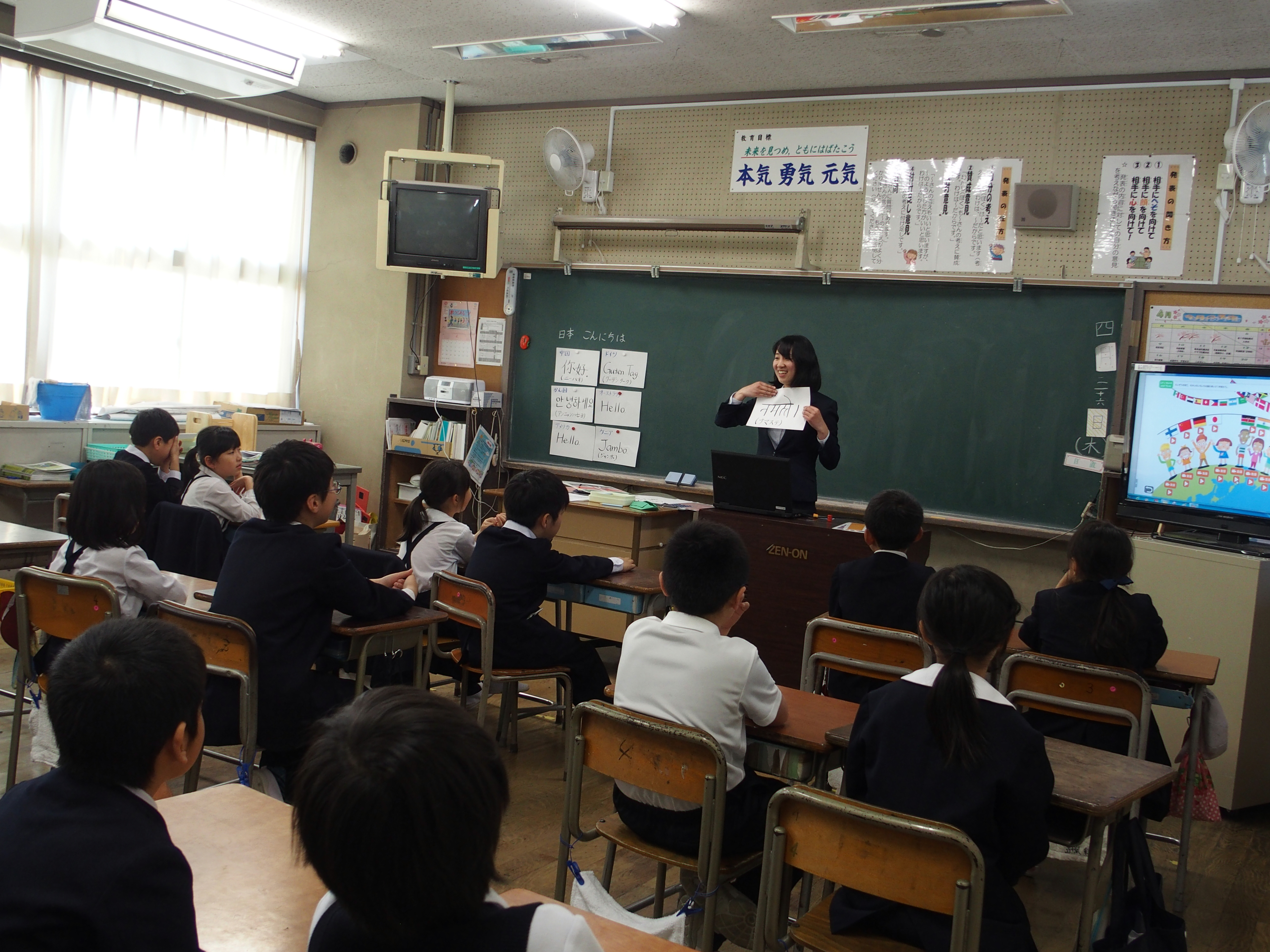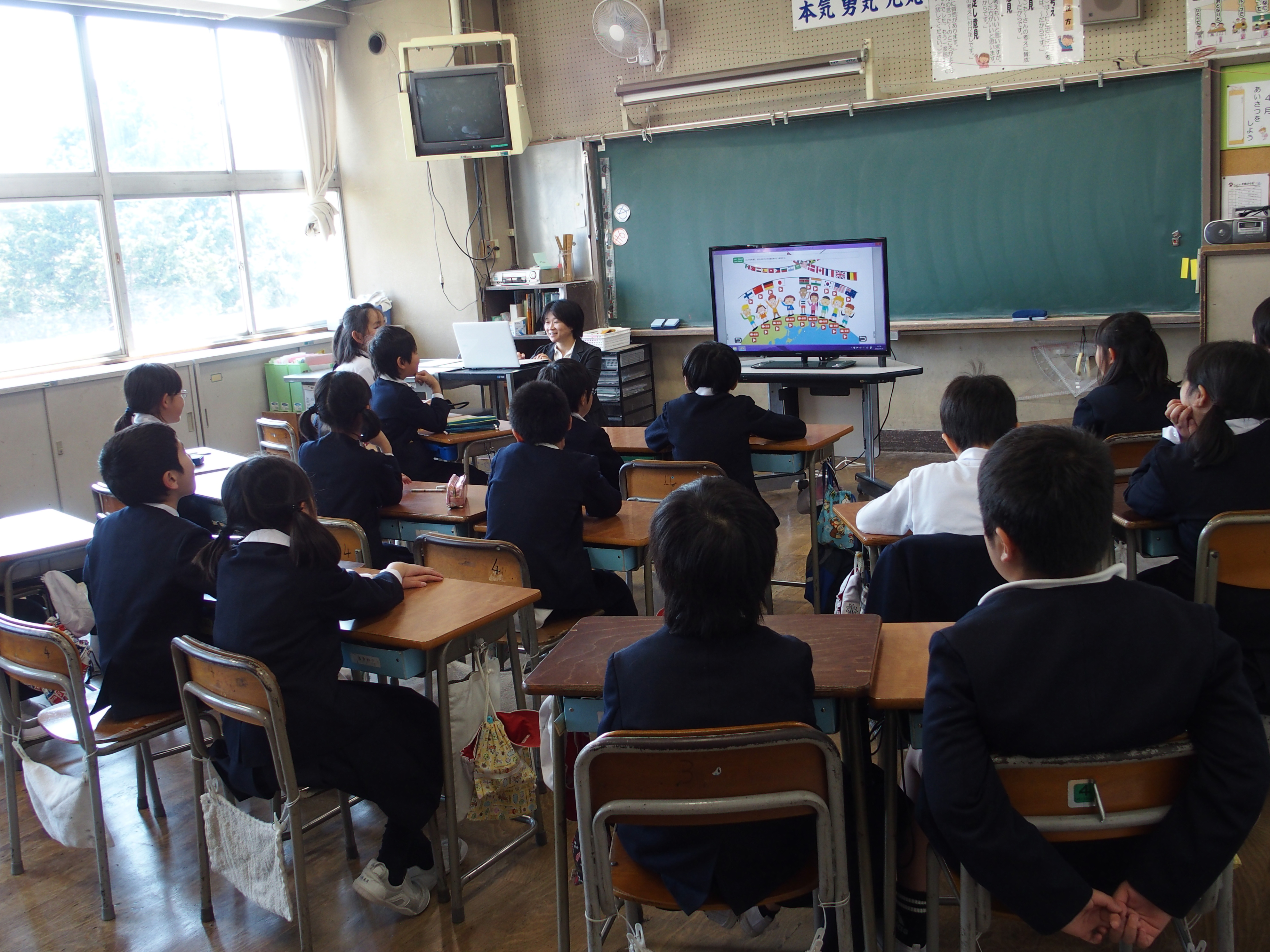 4.5年生は外国語活動の学習を行いました。今年度から3.4年生も外国語活動の学習が始まり,ICTを活用した授業に児童も興味津々でした。