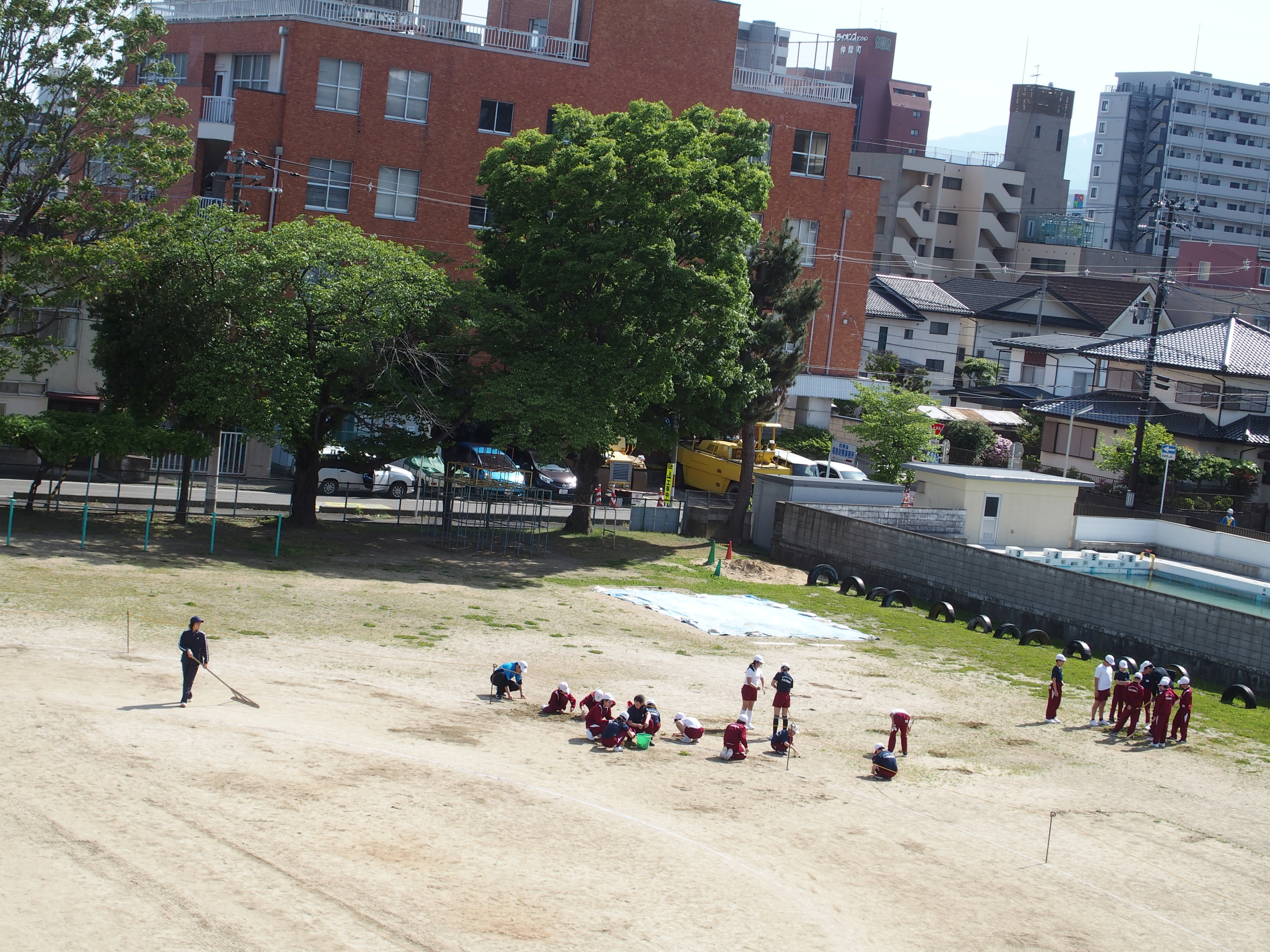 明日は晴れの予報です。大変暑くなるとのことですので,子どもたちの体調管理にも十分注意していきます。児童席にもテントを張り,子どもたちの暑さ対策にいたします。開会式は8:20からとなっておりますので時間に余裕を持ってお越しください。