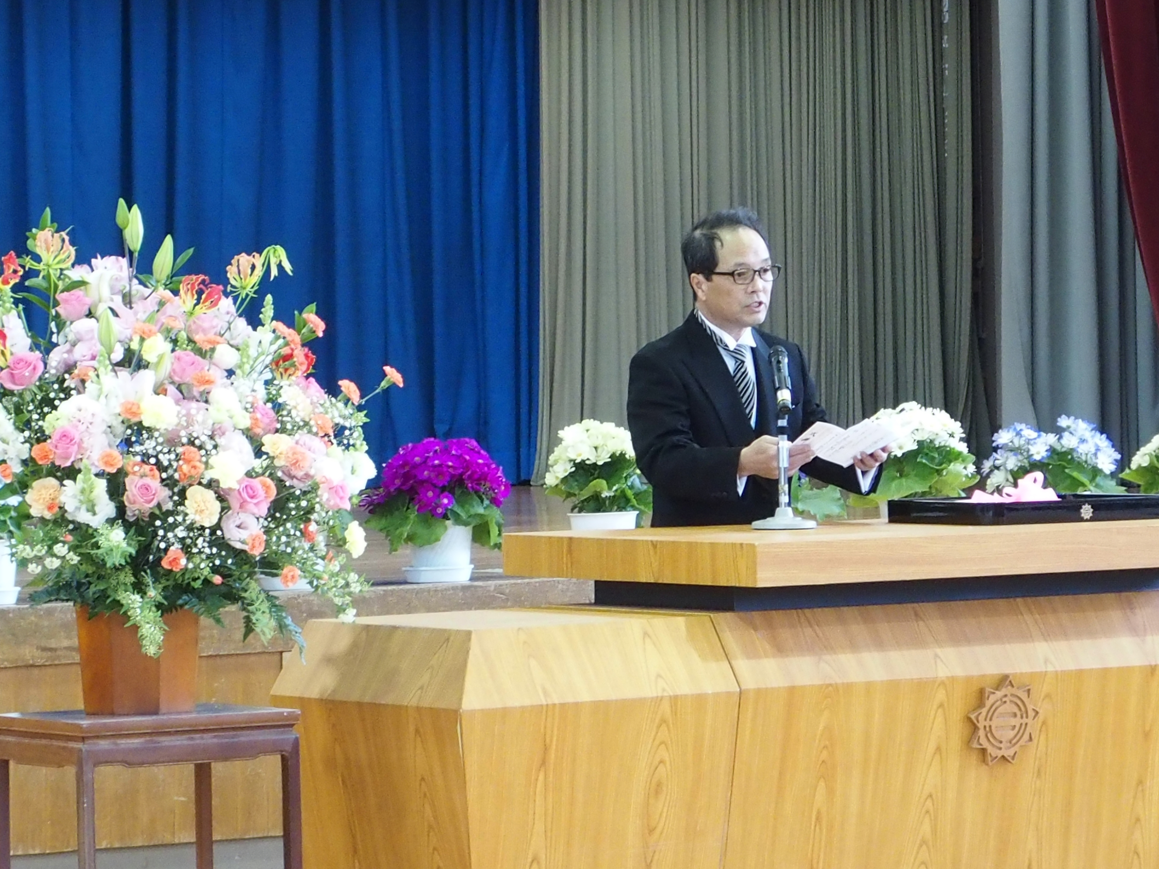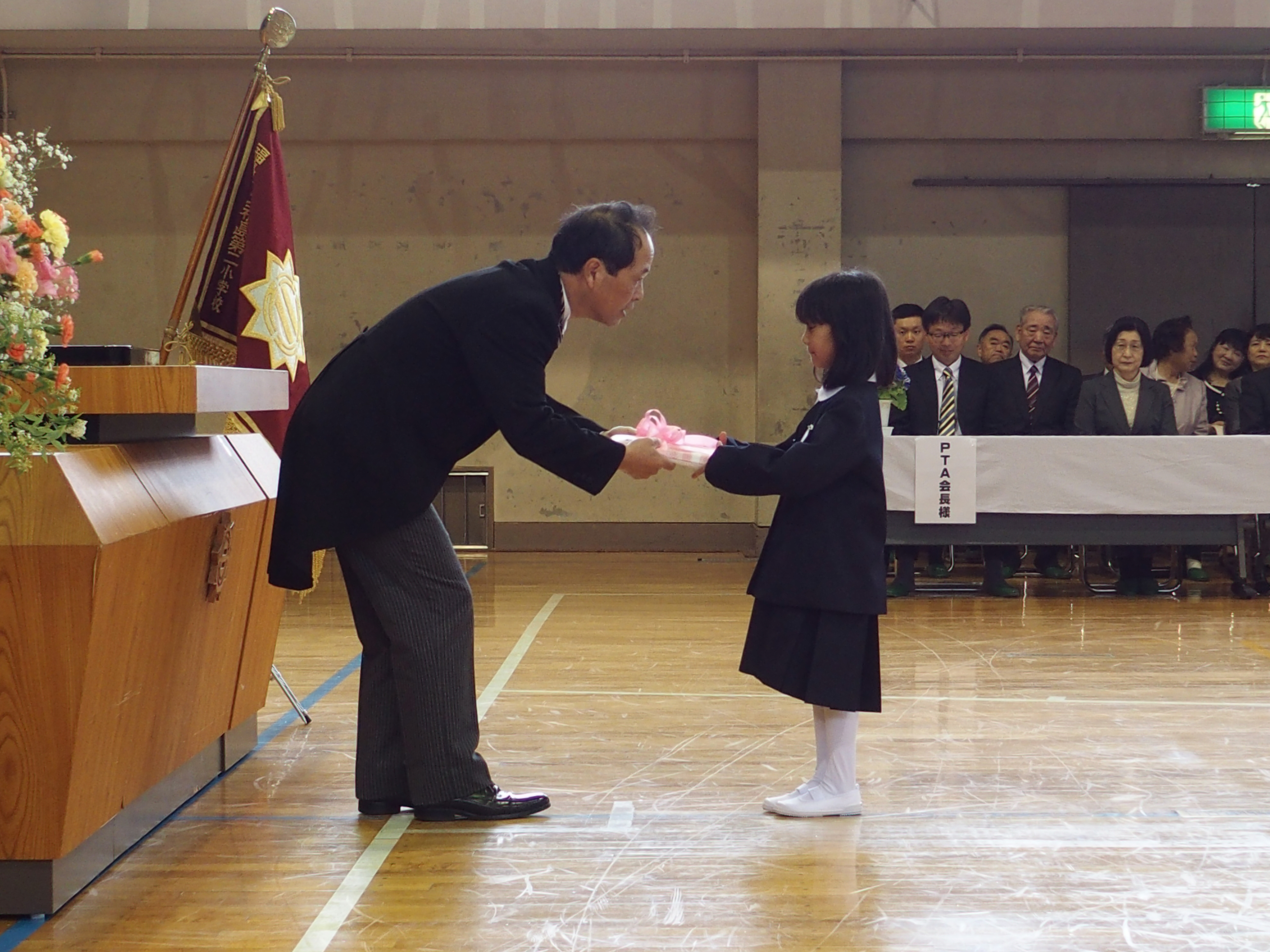 少し緊張しながら花のアーチをくぐり,入学式本番でも元気に「はいっ!」と返事をすることができました。