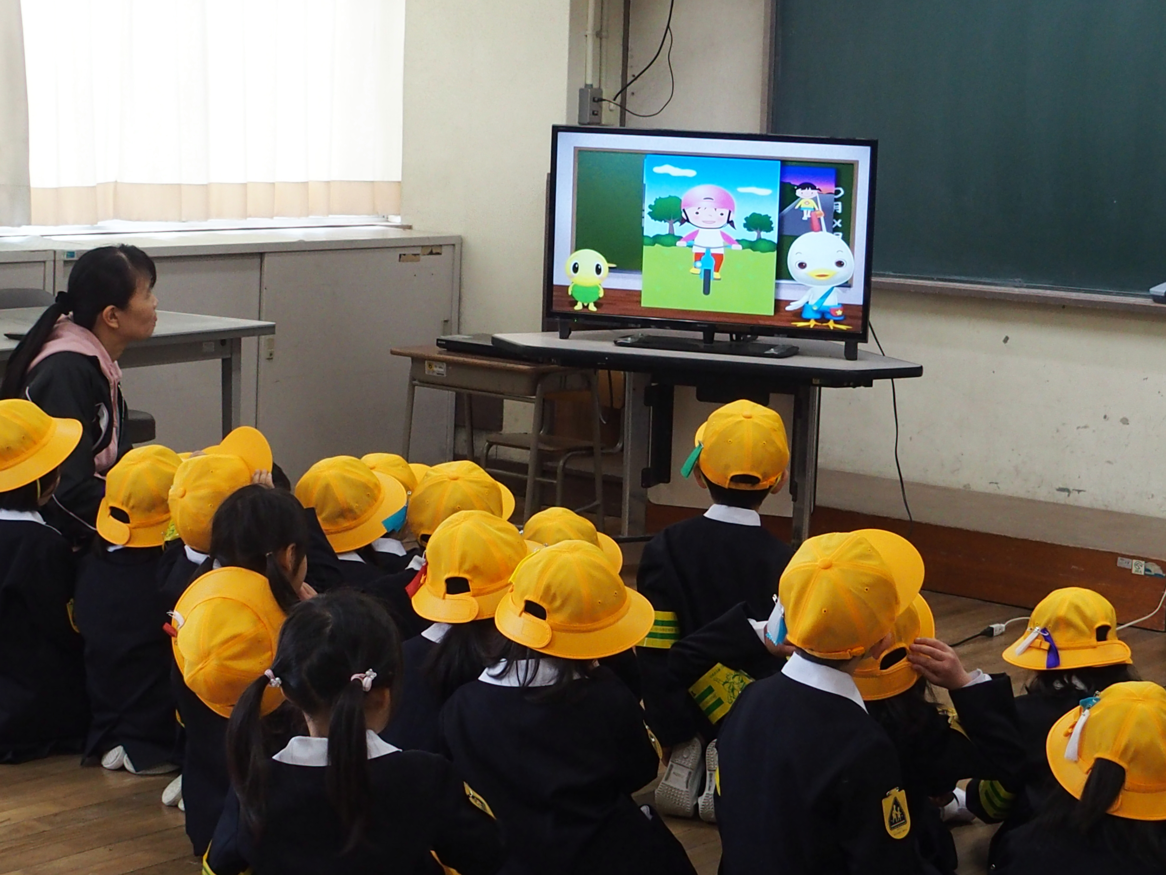 1年生はビデオを用いて交通安全指導を行いました。