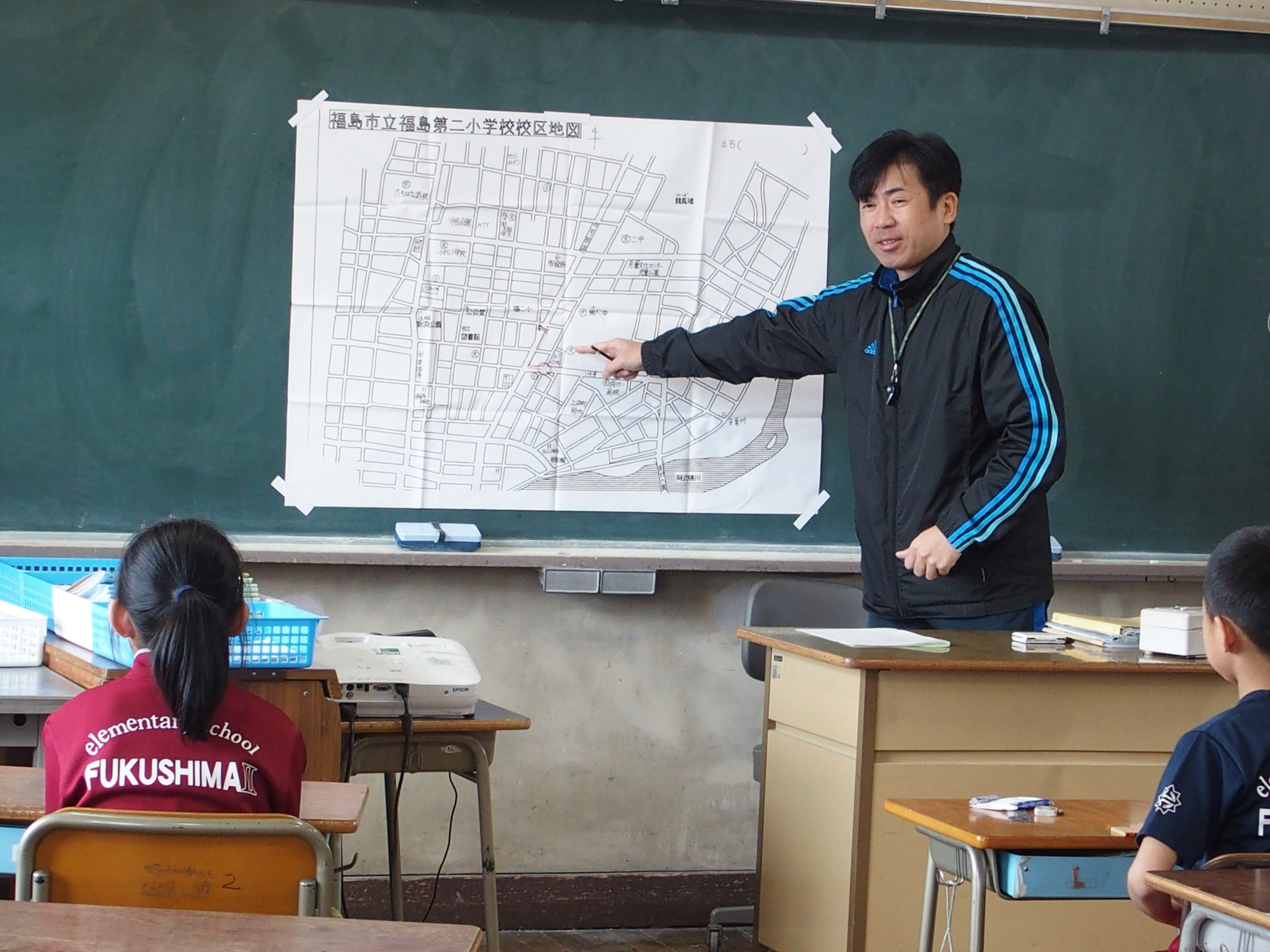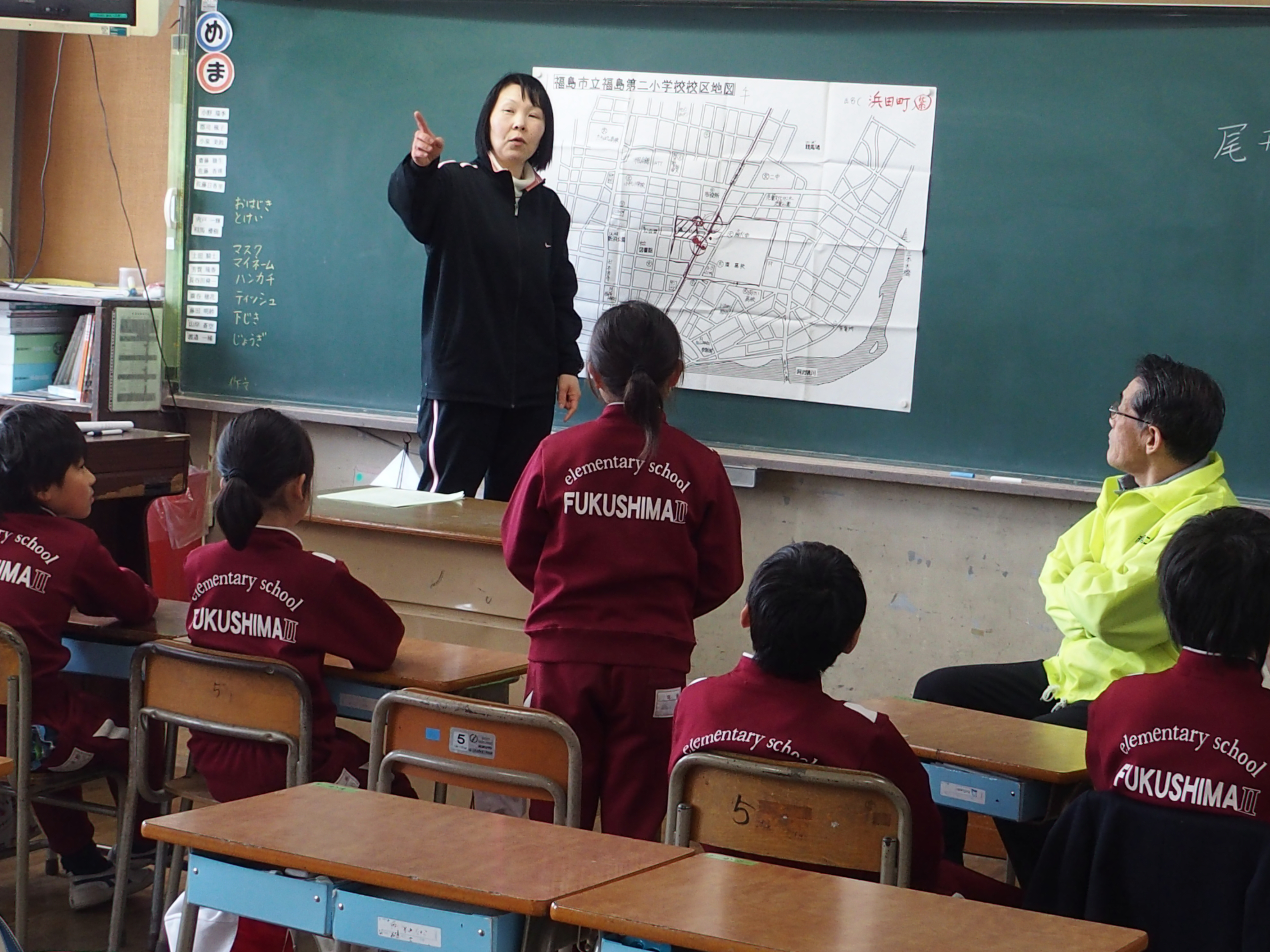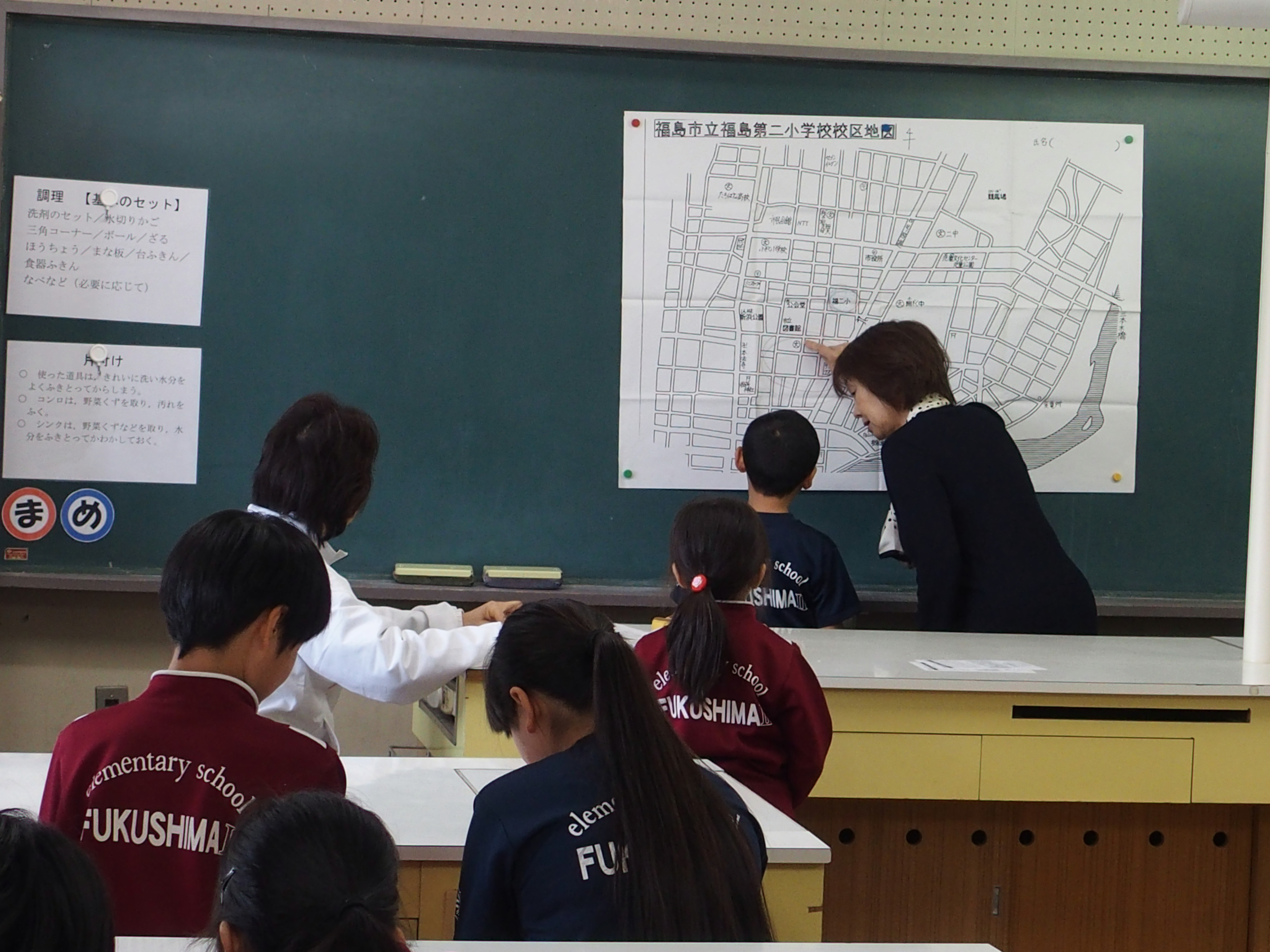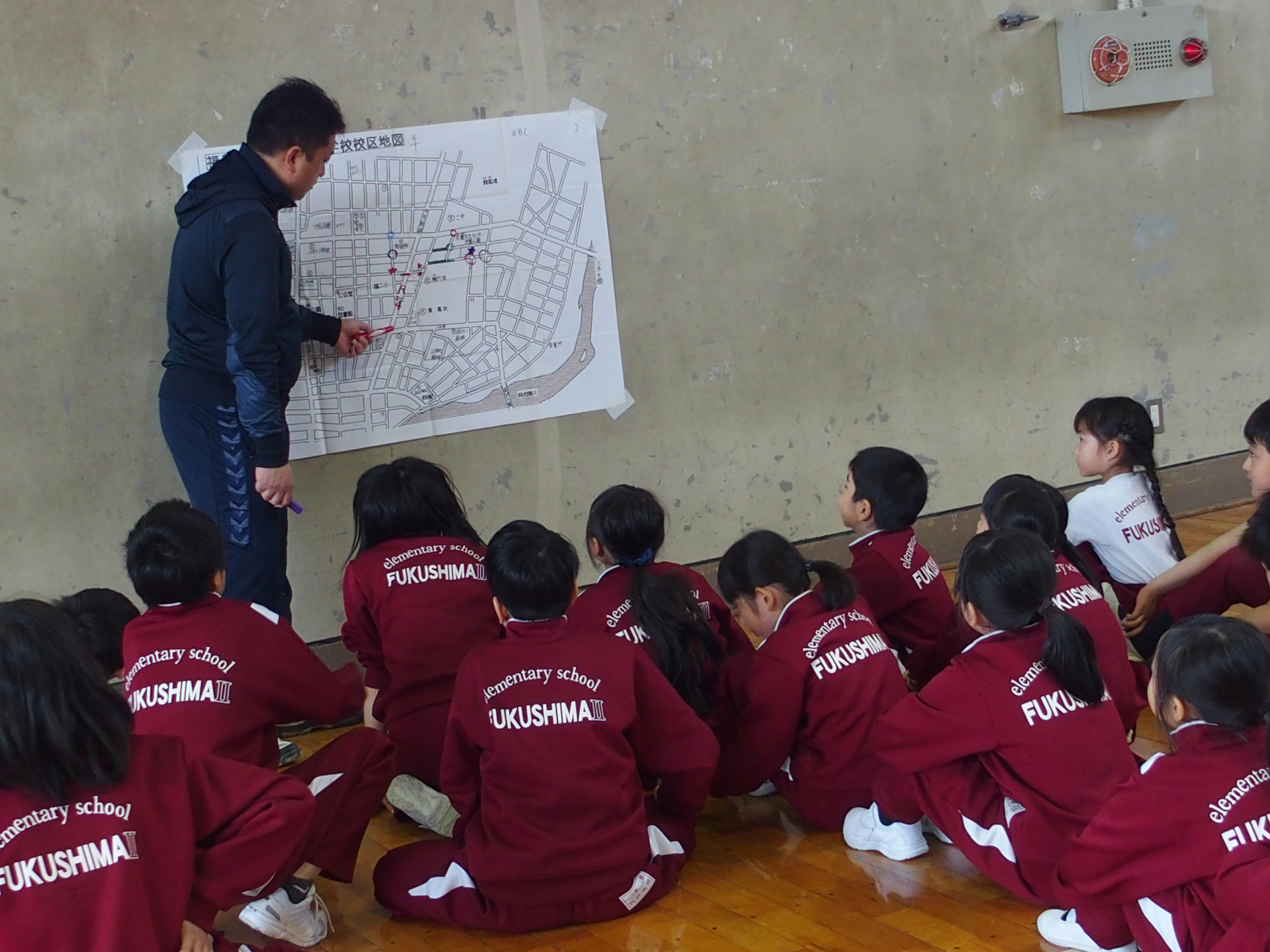 他の学年の子どもたちも地図を見ながら通学路を確認し,危険な交差点などを出し合ってどのようなことに気をつければよいのかなどを話し合いました。