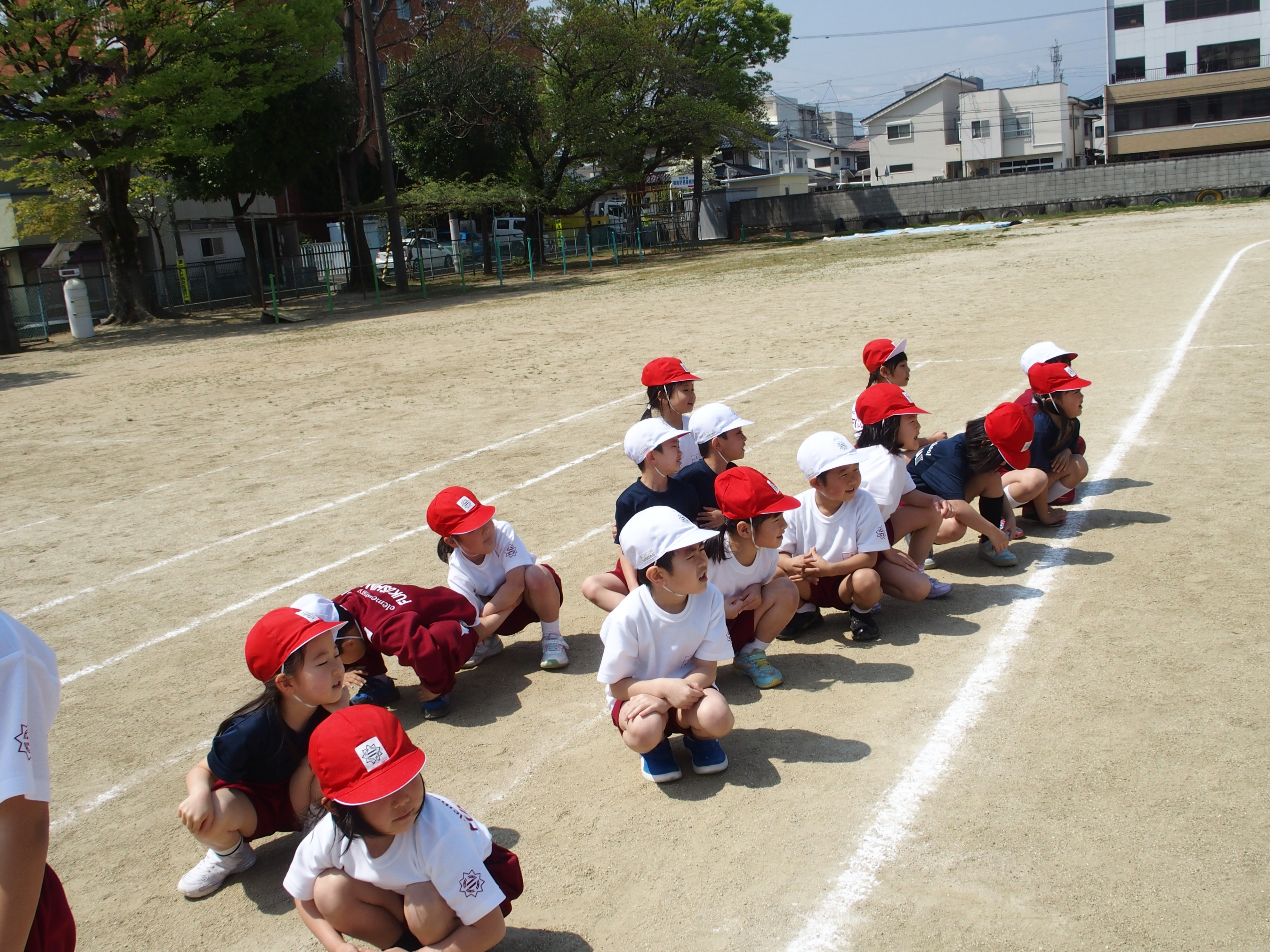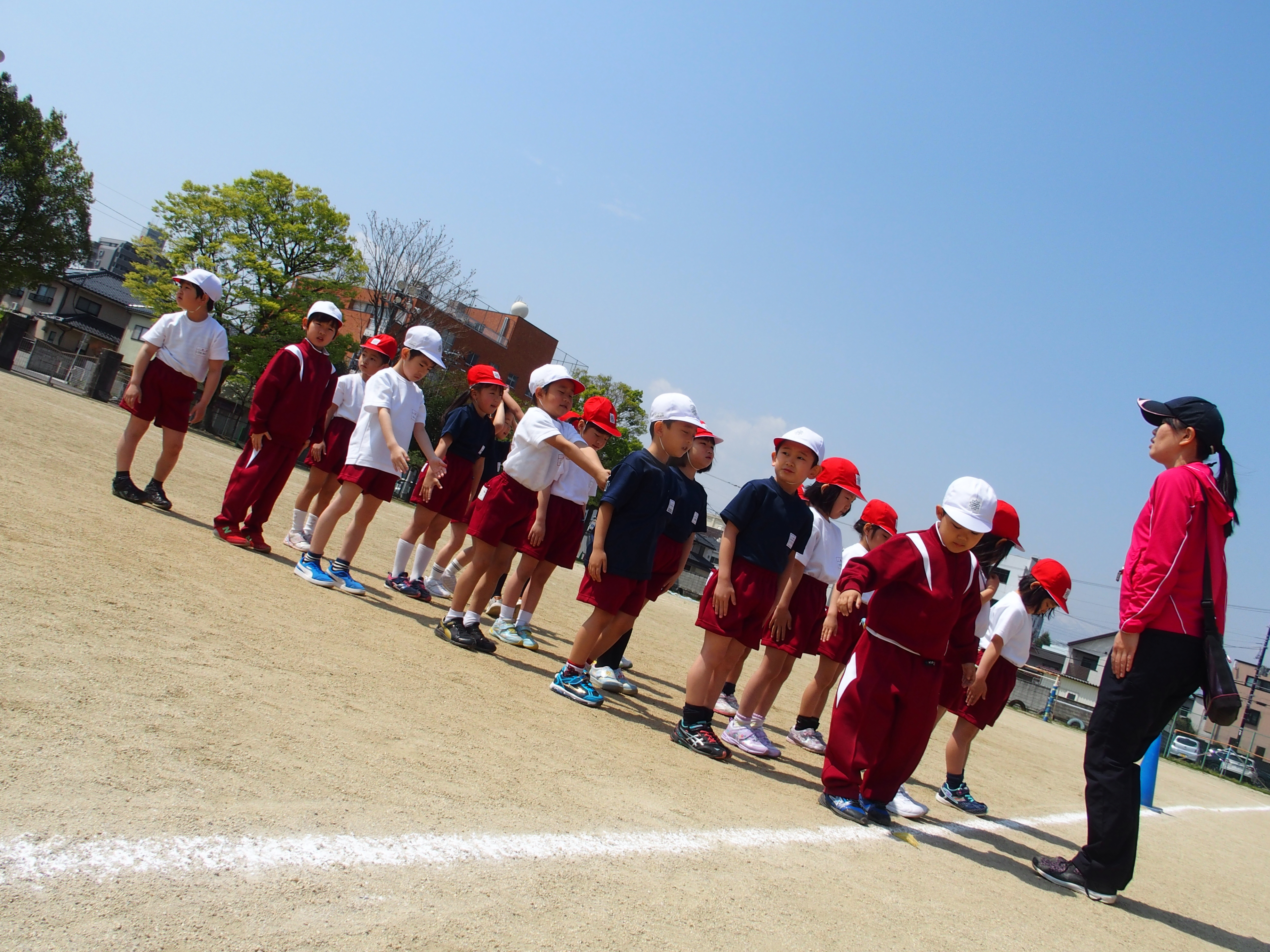 1年生も,はじめての頃よりも整列や準備運動が上手に出来るようになってきていました。