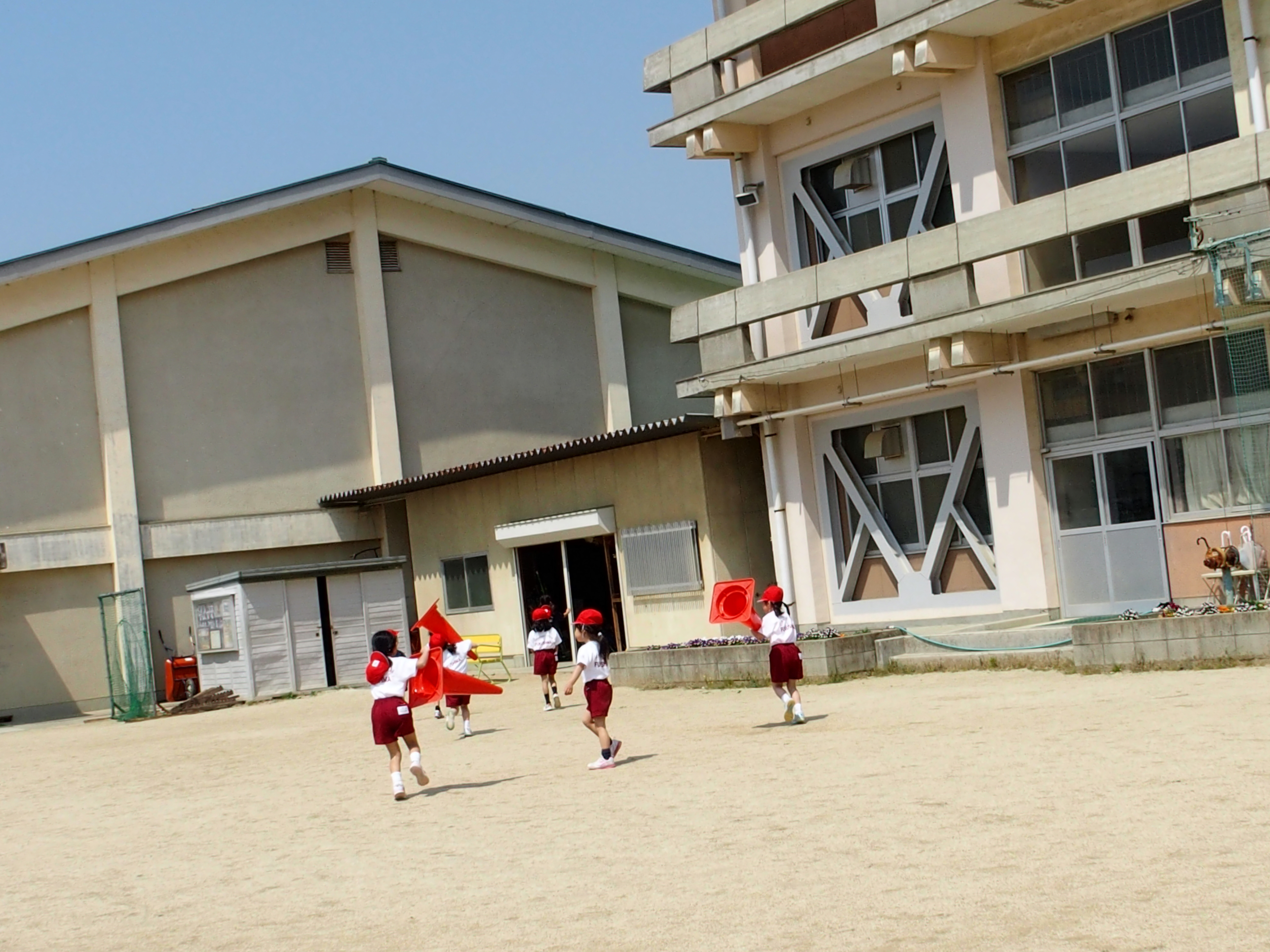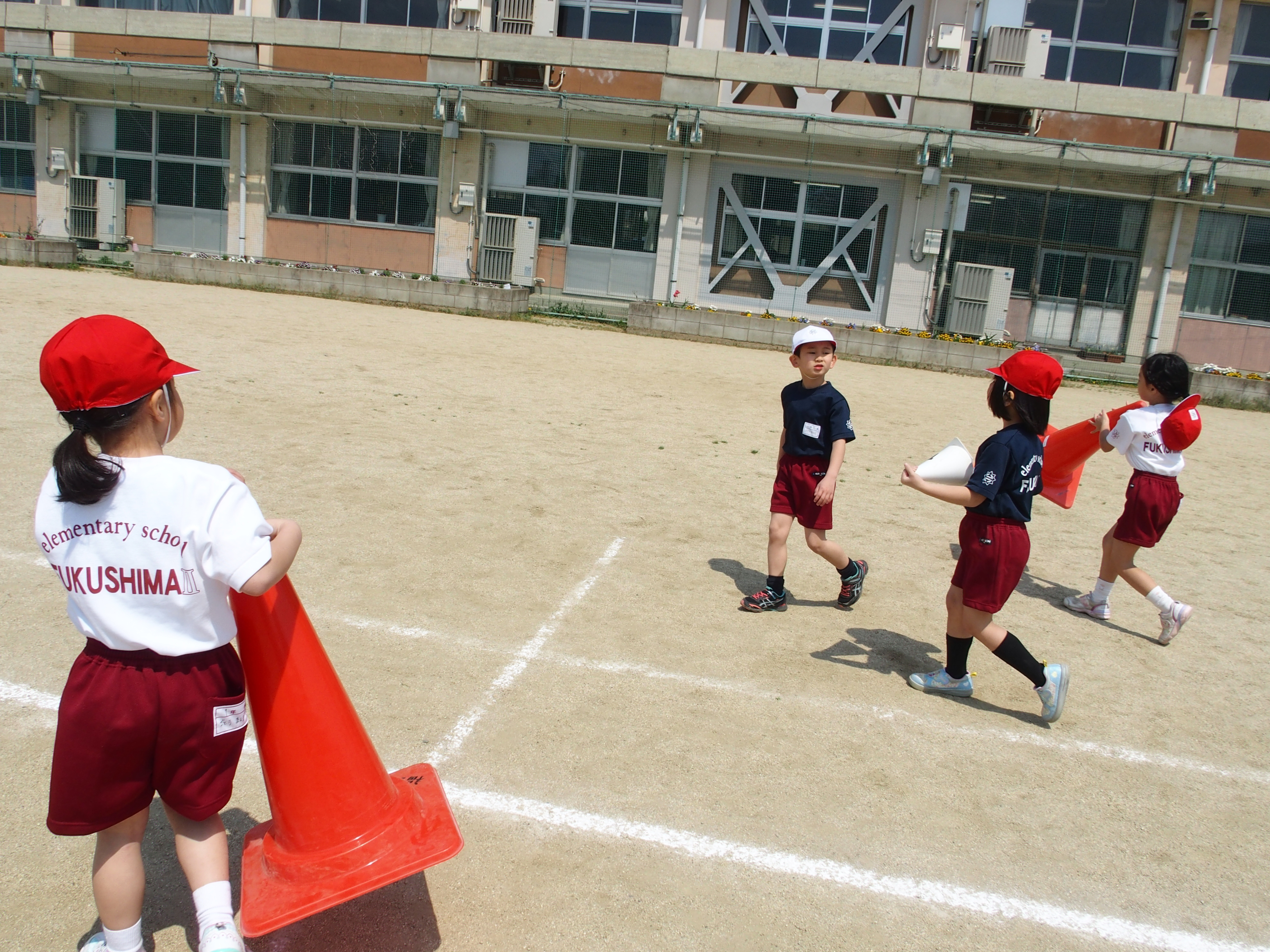 最後にはカラーコーンの片付けもきちんとできました。これから一生懸命練習に取り組み運動会本番ではねらいに迫る姿が発揮できるように,我々教職員も子どもたちの指導・支援に努めます。