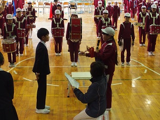 今日,鼓笛移杖式と6年生を送る会が行われました。移杖式では,主指揮が6年生から5年生へと引き継がれました。6年生を送る会では,在校生が感謝の気持ちを込めていろいろな出し物を披露しました。在校生から心を込めてかいた色紙も手渡され,最後に,6年生へエールが送られました。6年生にとって,思い出に残るひとときになりました。