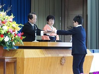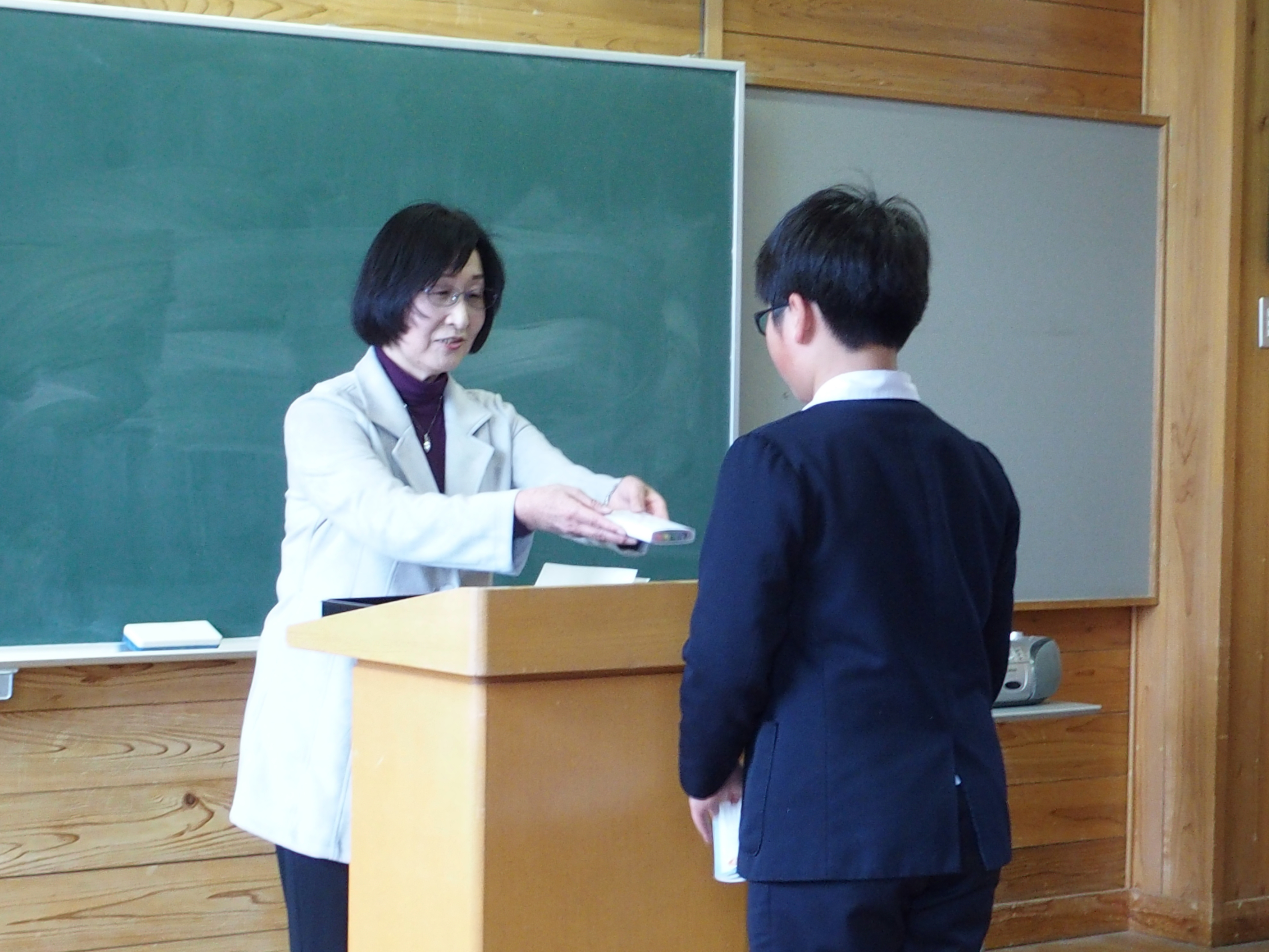 同窓会会長さんと事務局長さんがおいでになり,同窓会入会式が執り行われました。6年生も,同窓会の仲間入りとなりました。
