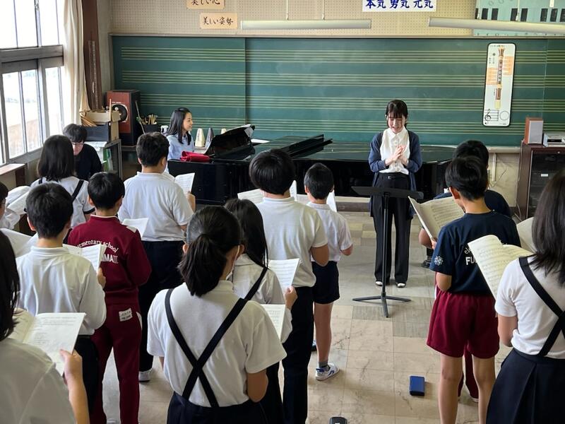 皆さんはソプラノ歌手や打楽器プレーヤー、ピアニスト、ダンサーなど様々ですが、それぞれの音楽を二小っ子たちに聴かせてくれたり、子どもたちの音楽の力を高めていただいたりして、豊かな音楽体験の時間となっています