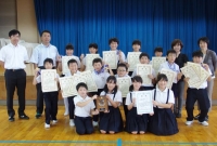 2016年8月25日 11時51分 第35回福島市水泳競技大会が7月26日に森合市民プールで実施されました。子ども達は全員粘り強く泳ぎ切り,立派な成績をあげてくれました。本当によく頑張りました。5年生6年生の選手の皆さんは,賞状とメダルなどを本日の表彰式の中で校長先生から授与され,嬉しそうな恥ずかしそうな表情を浮かべていました。