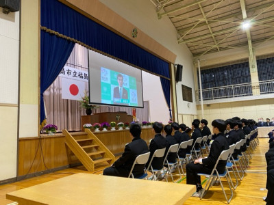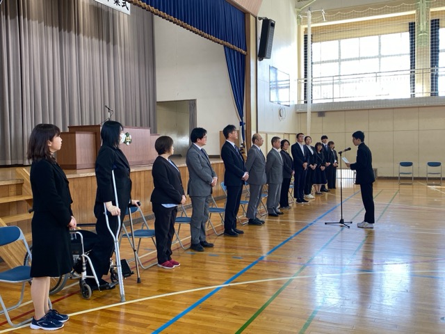 全校生の意見を反映し、生徒会が中心になって進めてきた「いじめ防止標語」作りが完成し、そのお披露目がありました。「気づいてよ 仮面に隠れた 辛い思い」です。全校生が一丸となってこの標語を胸にこの後の生活を送ってほしいです。