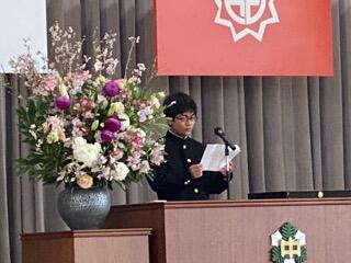 全校生、職員、来賓の方々に見守られて、入学式が行われました。在校生からタンホイザーの歌のプレゼントに圧倒されている様子でした。早く学校に慣れて、元気に生活してほしいです。