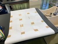 色を塗ったパーツの貼り合わせ作業を行っています。ビッグアート係の子どもたちも,最終的なデザインは知らされておらず,全てを貼り合わせた時に初めてわかるそうです。なお,大きさは縦「4m」・横「7m」になります。完成披露がとても楽しみです(*^_^*)。