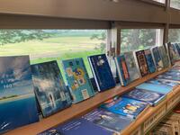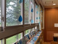 図書室では,学校司書の先生のアイデアで6月の展示テーマを「雨」とし,「雨」に関連する本や「雨=青」の表紙の本をまとめて展示する工夫がされています。また,廊下には夏の「雨」の名前の掲示物もあり,子どもたちはとても勉強になっています。授業参観等で来校した際には,ぜひご覧ください。