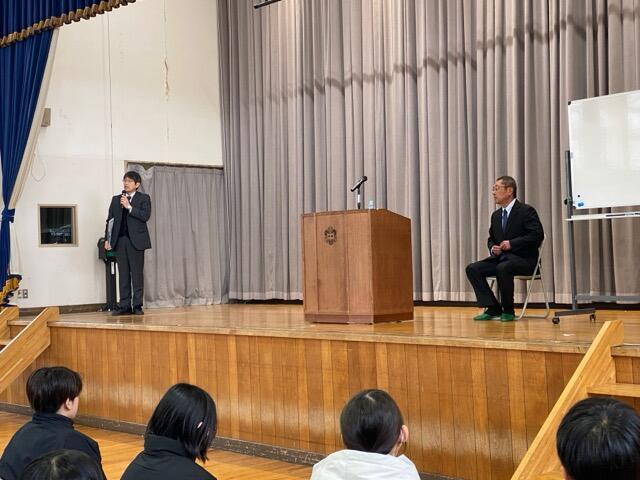 2025年1月30日 15時32分今日は、全校生で聖光高校 野球部斎藤監督をお迎えして教育講演会を行いました。監督の足跡や育てた選手のお話などとても興味深いお話でした。いつもテレビでしか見ることのない監督を目の前でそのお話が聞けてとても感激です。「不動心」「感謝の気持ち」「お互いをリスペクト」といった、中学生にとってもわかりやすく心に響いたと思います。春の選抜前のご多用の中本当にありがとうございました。