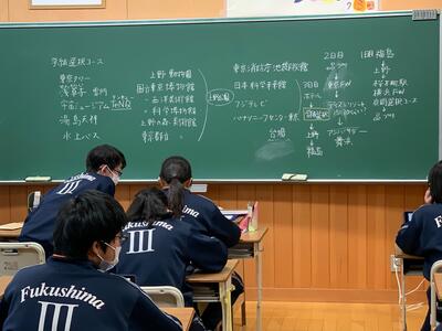 2023年1月11日 18時20分2年生は,修学旅行(4月実施予定)に向けての準備を着々と進めています。本日は,学級選択コースを決定するために,タブレット端末を活用して訪問場所(浅草寺・湯島天神等)の情報を収集しました。収集した情報をもとに,学級でよく話し合ってコースを決定してほしいと思います。