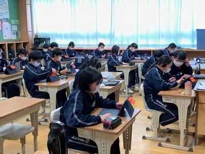 2年生は,修学旅行(4月実施予定)に向けての準備を着々と進めています。本日は,学級選択コースを決定するために,タブレット端末を活用して訪問場所(浅草寺・湯島天神等)の情報を収集しました。収集した情報をもとに,学級でよく話し合ってコースを決定してほしいと思います。