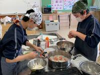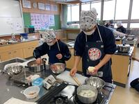 家庭科の授業で調理実習を実施し,「シュウマイ」と「大根の味噌汁」を作りました。事前に作り方を学んでいたので,手際よくと行きたかったのですが,皮で肉だねを包むのが難しく,時間がかかってしまいました。でも,味はとてもおいしかったです(^^)v