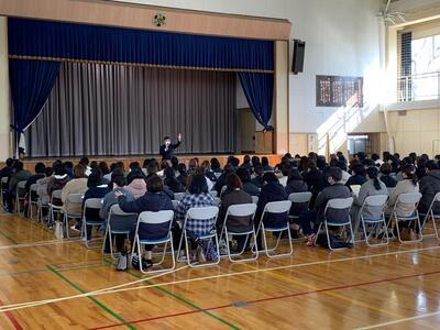 令和5年度新入生保護者説明会を実施し,各担当より,中学校生活・生徒心得・保健関係等の説明をしました。入学に向けた諸準備として,多くの提出物がありますが,よろしくお願いいたします。また,在校生・教職員ともに,新入生の入学を心より歓迎いたします。