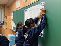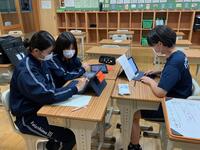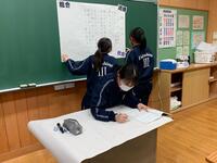 2023年10月5日 18時40分2年生の「空翔祭」総合的な学習の発表と合唱コンクールに向けての活動の一コマです。1組では,総合的な学習の発表に向けて劇の台本作りをしていました。また,2組では,心を一つにして歌うために,クラスの合唱曲の歌詞の掲示物を作っていました。