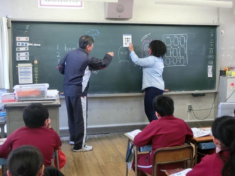 今日は1校時目から2年生、5年生、6年生がALTのルーシー先生と外国語活動を行いました。