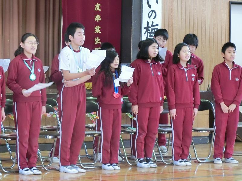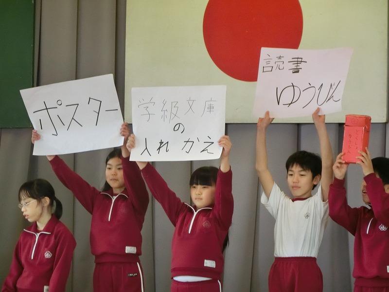 2月26日に児童会各委員会が1年間の活動を振り返って発表会を全校生の前で行いました。3年生は来年度どの委員会に所属するのか楽しみにしています。