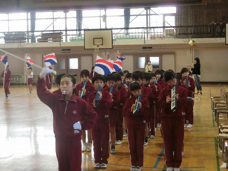 今日から3月、学校生活も後15日を残すのみとなりました。今日は6年生が間もなく卒業することを祝って、感謝の会を行いました。併せて鼓笛移杖式も行い、6年生から在校生に伝統を引き継ぎました。