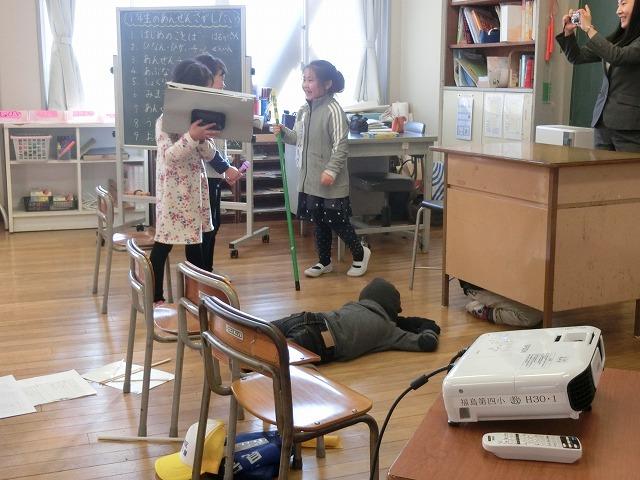今年度最後の土曜授業が26日に行われました。1年生は、生活科で昔遊びを行いました。6年生は社会科で租税教室、あおば学級では親子でケーキ作りを行いました。