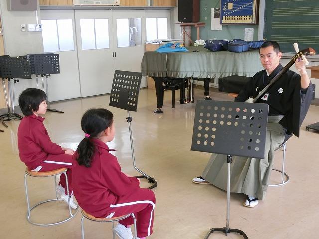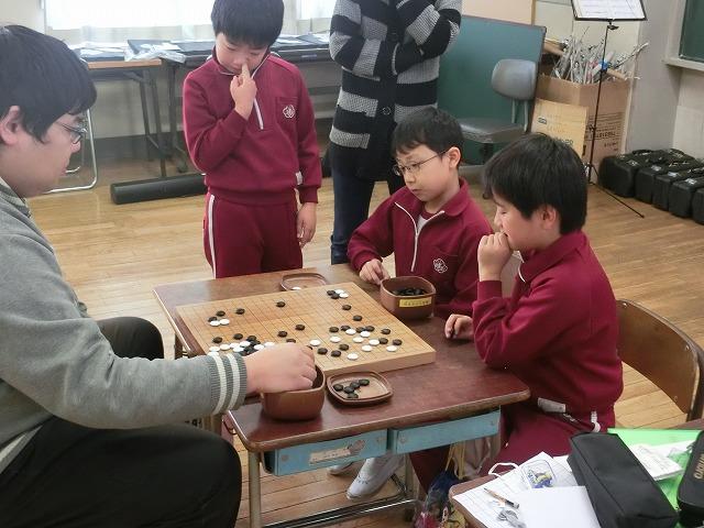 雪が降り、外はシャーベット状の雪がまだ残っていて肌寒い水曜日です。でも3年生の子どもたちは元気に名人のもと、修行した成果を披露する日がやってきました。 ① そば打ち名人 ② イラスト名人 ③ 囲碁名人 ④ 三味線名人の四人の名人に学んだ子どもたちは一生懸命に頑張る姿が見られました。