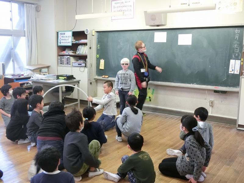 2019年2月20日 13時00分今日は、支援学校の子どもたちとの交流会を学年ごとに実施しました。1年間を通して、視覚、聴覚支援学校の子どもたちと運動会や学習発表会など多くの行事で交流をしてきました。