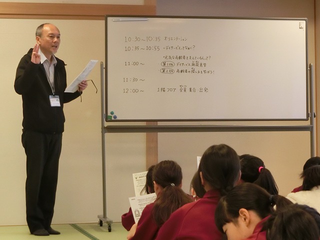 12日(月)3,4校時に6年生は保健福祉センターにあるデイサービスセンターを訪問してきました。社会福祉法人福島市社会福祉協議会の方に、サービスの内容を説明していただき、お年寄りへの接し方等を教わりました。今回で2回目ですが、12月にも第3回の訪問を予定しています。