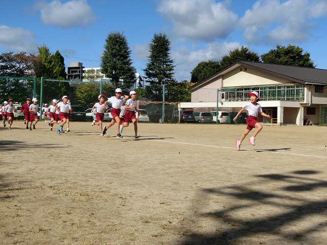 11月が今日からスタートしました。北風が少し冷たいですが、子どもたちは秋晴れの下、元気に持久走記録会を実施しました。自分の記録を1秒でも縮められるように日頃から練習してきた成果が今日は発揮できたようです。