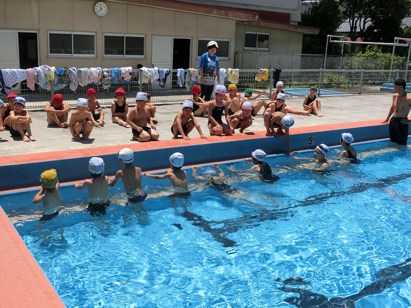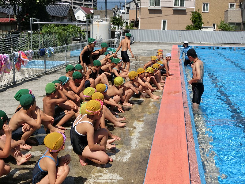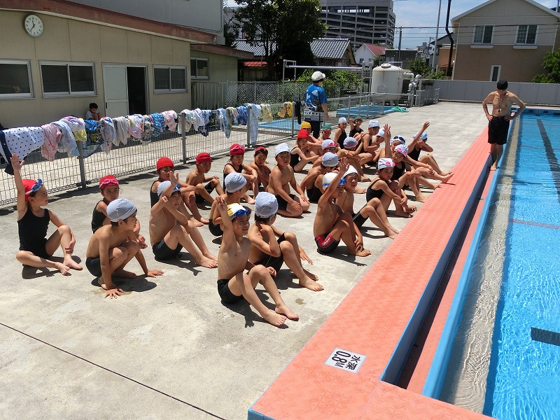 17日と18日は水泳のインストラクターの先生が指導に来てくださいました。毎日猛暑が続く中、絶好のコンディションで実施することができました。今年は例年になく暑い日が続き、水泳の学習の機会が増えて子どもたちも大喜びです。体調の管理をしっかりとさせて二日間学習に取り組ませます。