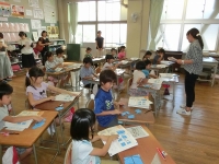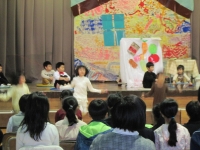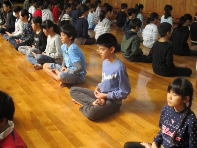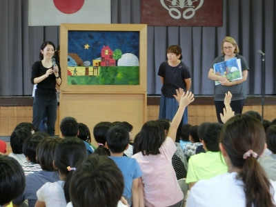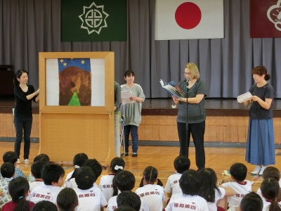 今日は、昼休みの梅校タイムで、全校生が体育館で読み聞かせを行いました。始めにクイズを行い、静かに話を聞く準備ができたところで、一つ目のお話を聞きました。題名は「たんじょうびのふしぎなてがみ」です。英語の語りを日本語で聞き直してのお話、みんな真剣に聞いていました。大型しかけ紙しばいを使用して、分かりやすいお話でした。二つ目は、「お月様の話」です。読書の秋になり、読書に親しむ習慣ができるとよいですね。