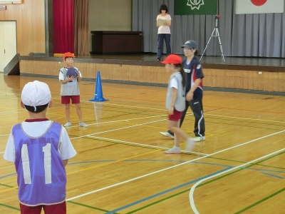 2学期の研究授業が3年生の体育科「ゴール型ゲーム(ハンドボール)」でスタートしました。あまり子ども達には経験したこのない球技のハンドボールの授業でしたが、ルールやコート、ボールの工夫をして楽しく授業に取り組む姿が見られました。