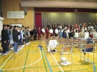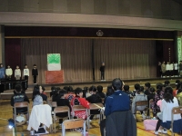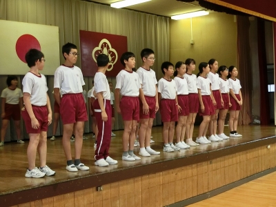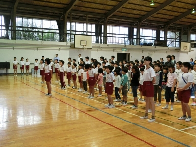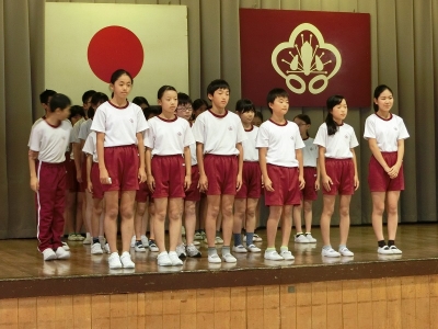 本日の愛校タイムで10月4日に行われる陸上大会の選手壮行会を行いました。大会に出場する五,六年生に全校生でエールを贈りました。大会当日までコンディションを整え、自己ベストを目標に今まで練習してきた力を発揮してほしいと思います。