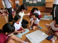 二年生の生活科の研究授業「うごくうごくわたしのおもちゃ」が9月28日三校時に”なごみ”を授業会場として行われました。二年生は一年生を招待して楽しく遊べるようにルールや会場を工夫して準備を進めることができました。4つのグループで話し合いを深め、よりよいものを作り上げようと真剣に学習をする姿は大変すばらしかったです。