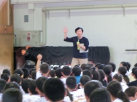 夏休みを前に、防犯教室を実施しました。警察署の生活安全課の方を迎えて、日頃から一人一人が防犯意識を高めていく事や、身の回りにある潜在危険を予測し、具体的に対応できるようにしていかないといけないこと等の指導を受けました。来週から始まる夏休みも事故やけがなどのないようにしっかりと意識して生活できるように全校生で誓いました。