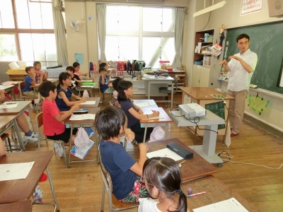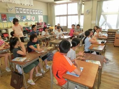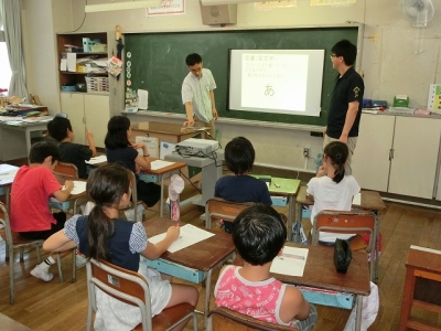 本日、一学期最後のEAAの授業が行われました。五,六年生は、正しい発音の練習をしたり、ゲームを通して外国語に親しんだりして、外国語活動を行っていました。村田先生二学期もよろしくお願いします。