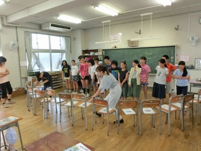 防災の日を前に、本校でも震度5の地震の想定と火災発生からの避難訓練を実施しました。休み時間に行ったため、子供たちは教室以外の場所で、緊急放送を聞きながらも、落ち着いて行動することができました。2,4,6年生は、火災から出る煙からの避難訓練も併せて実施しました。消防署の署員の方の話を真剣に聞いて、スモーク体験を行う姿は真剣そのものでした。